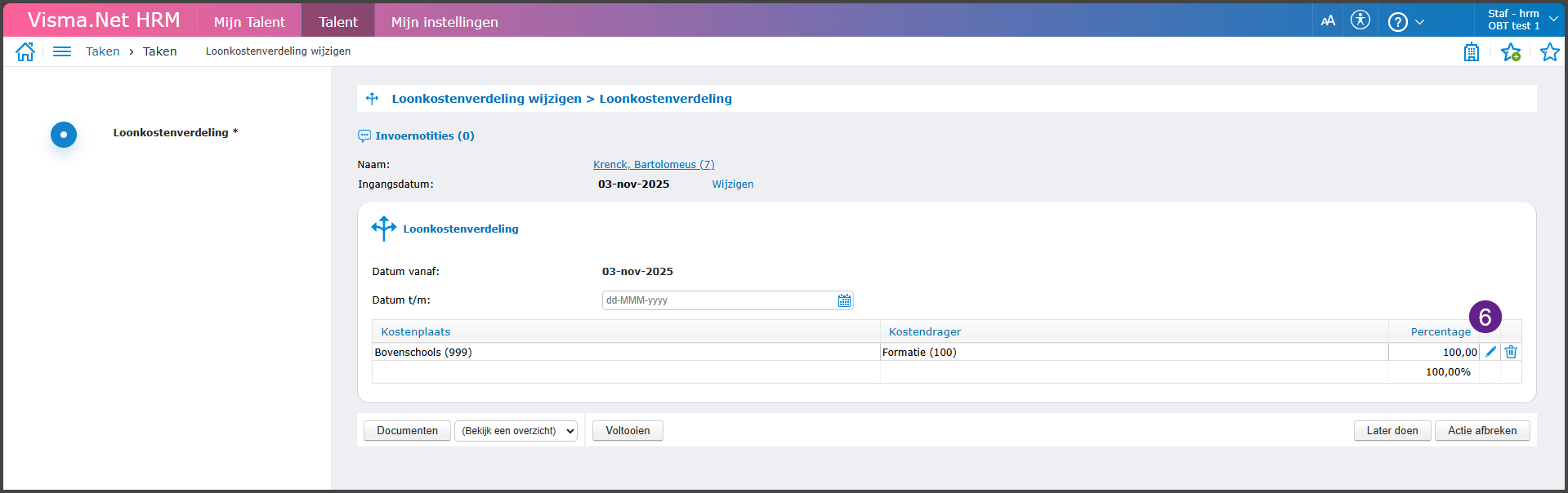 - Klik op het pennetje om de huidige loonkostenverdeling aan te passen.