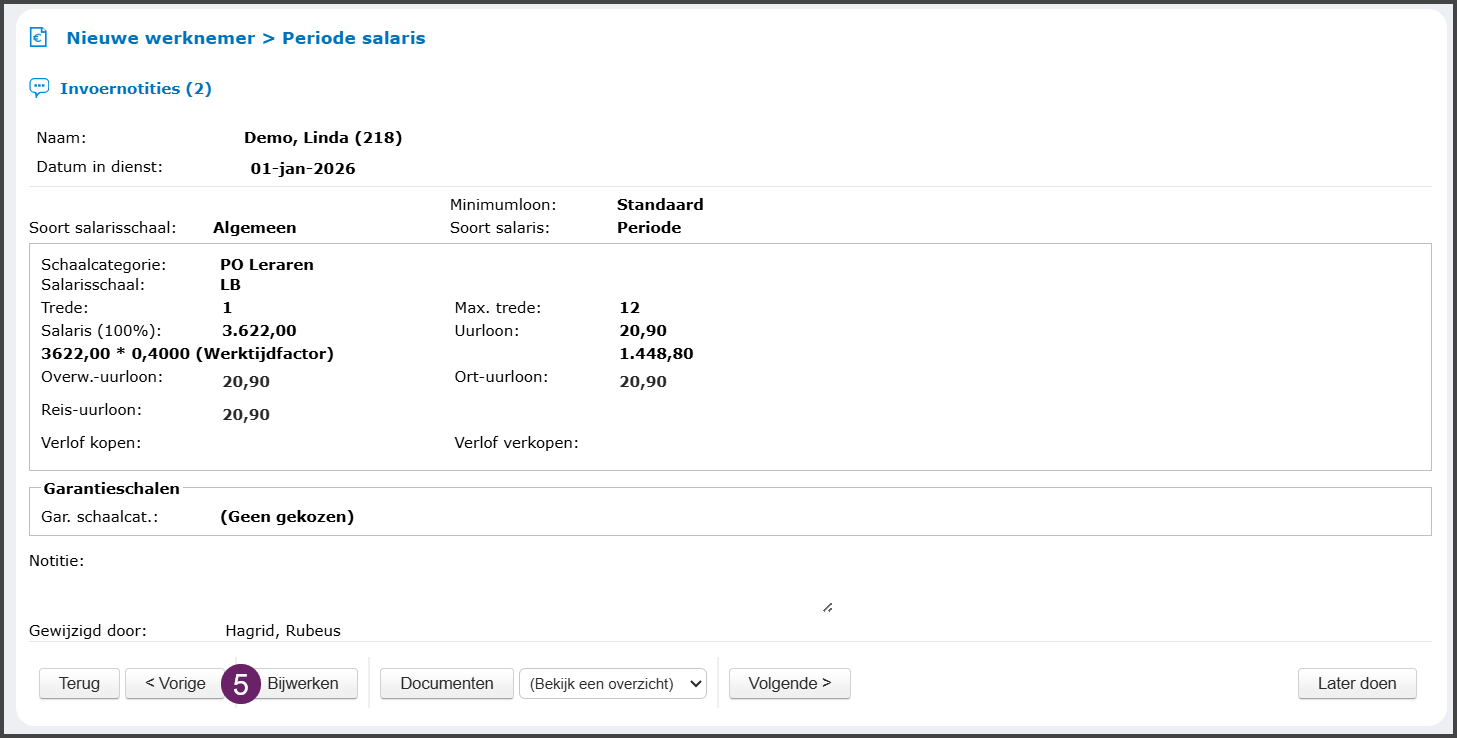 - Wijzig, indien nodig, de salarisschaal en trede.