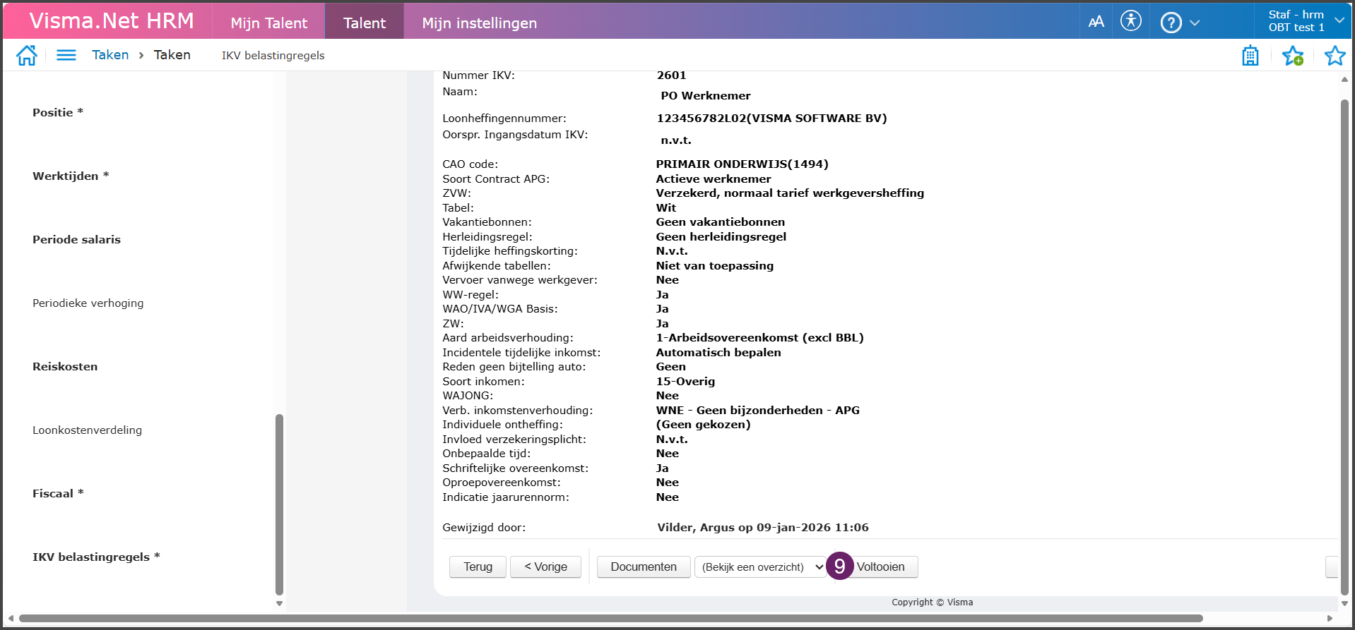 - Klik op 'Bekijk details' en bekijk de wijziging. Navigeer naar de laatste sectie en klik op 'Voltooien' en vervolgens op 'Goedkeuren'. De contactpersoon van ObT ontvangt een taak voor de laatste goedkeuring, waarna de taken worden gestart voor de werknemer.