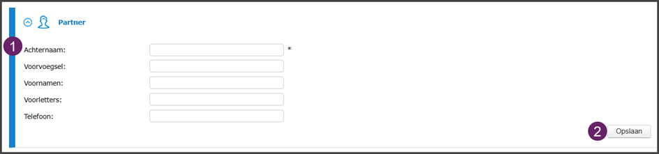 - Heb je een partner? Vul minimaal de achternaam in. Heb je bij je persoonlijke gegevens bij ‘naamgebruik’ gekozen voor partner/eigen of eigen/partner, dan wordt deze achternaam gebruikt.
