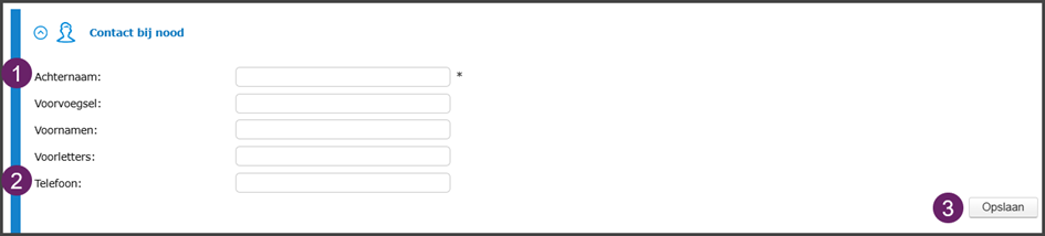 - Het is ook raadzaam het telefoonnummer toe te voegen, zodat in geval van nood jouw contactpersoon gebeld kan worden.